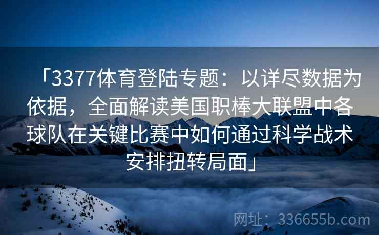 在职业棒球的大舞台上,每一场比赛都充满了悬念和变数。真正令人震撼的,是在比分胶着甚至落后的情况下,球队如何通过科学的战术安排和精准的数据分析,完成惊天逆转。这种逆转不仅展现了球队的... 在职业棒球的大舞台上,每一场比赛都充满了悬念和变数。真正令人震撼的,是在比分胶着甚至落后的情况下,球队如何通过科学的战术安排和精准的数据分析,完成惊天逆转。这种逆转不仅展现了球队的实力,更折射出数据分析在现代运动中的重要性。